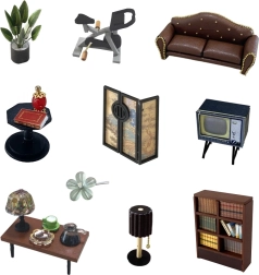 Das Set enthält zahlreiche Mini-Möbel und Dekorationen, mit denen Sie das Interieur bis ins letzte Detail gestalten. Ideal für kreative Anpassungen und Ihren eigenen Stil.