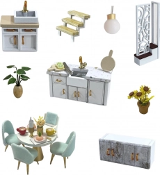 Bequeme Couch, Hängesessel, eleganter Tisch und ein niedliches Kätzchen mit Kratzbaum – jedes Teil ist präzise gestaltet für eine realistische Optik des Interieurs.