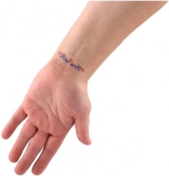 Die Anwendung ist einfach: Ziehen Sie die Schablone ab, platzieren Sie sie an der gewünschten Stelle, färben Sie die Formen vorsichtig aus, lassen Sie die Tinte ca. 10 Minuten trocknen und entfernen Sie die Schablone. Das Ergebnis sind saubere und ausdrucksstarke Motive.