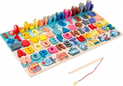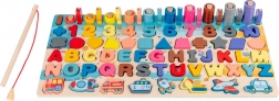 Teil der Tafel ist eine magnetische Angelrute, die es Kindern ermöglicht, das Angeln mit verschiedenen Teilen auszuprobieren.