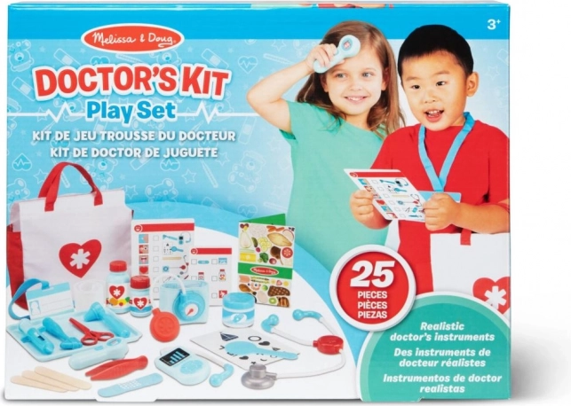 Stethoskop, Thermometer, Spritze, Schere und weitere Instrumente für realistische Rollenspiele als Arzt oder Krankenschwester.
