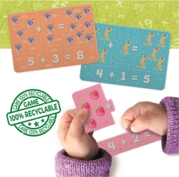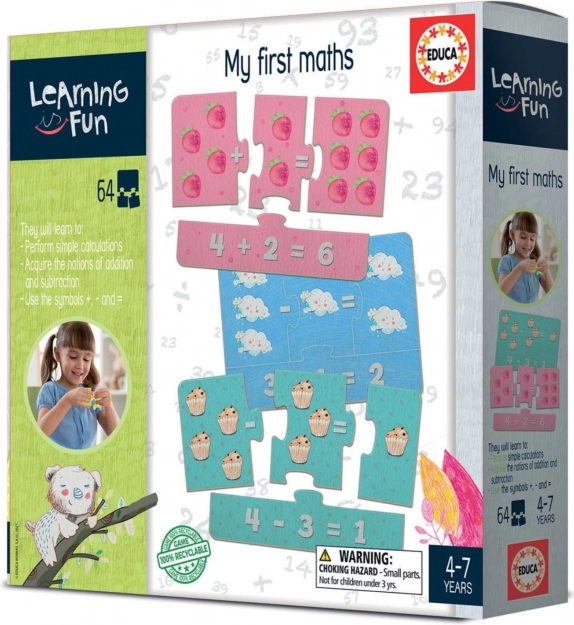Das Lernpuzzle und Spiel Meine erste Mathematik aus der Reihe EDUCA Learning is Fun ist ein großartiger Begleiter für Vorschulkinder und jüngere Schulkinder. Auf spielerische Weise führt es durch die ersten Schritte der Mathematik – vom Erkennen von Zahlen bis hin zu einfachen Rechenaufgaben. Kinder setzen vierteilige Puzzles zusammen, bei denen jedes richtige Ergebnis an seinen Platz passt und so das Verständnis für Zusammenhänge stärkt.