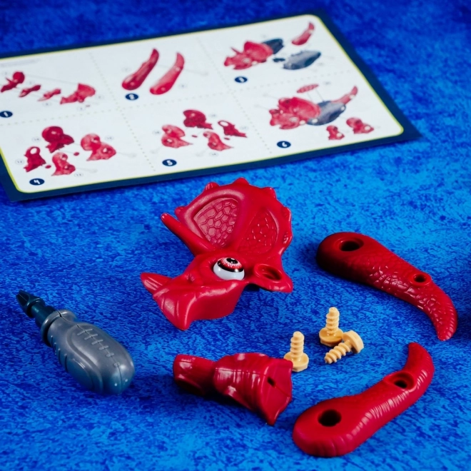 Mit diesem Konstruktionsset können Kinder ihr eigenes bewegliches Triceratops-Modell aus Kunststoffteilen, die im Set enthalten sind, zusammensetzen. Dank der Räder unter den Beinen kann sich der Dino bewegen, was den Spaß und die Interaktivität erhöht.