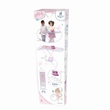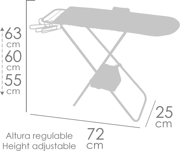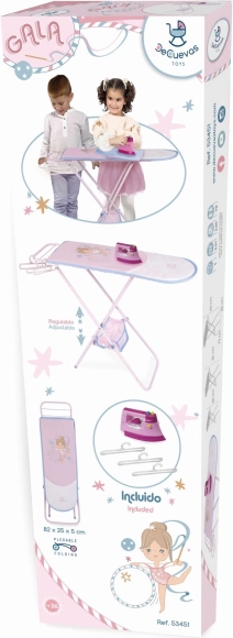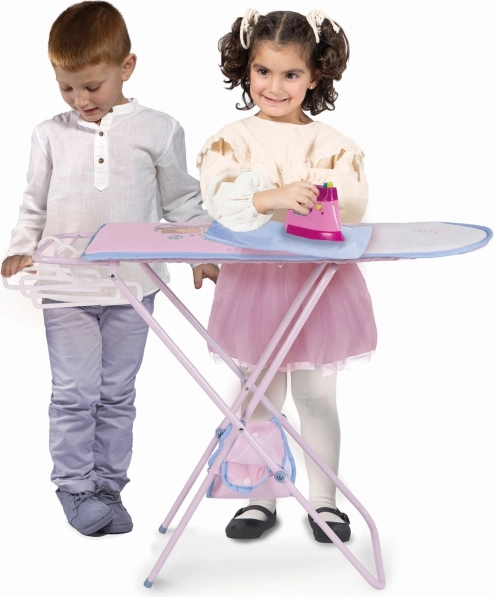 Im Lieferumfang sind praktische Accessoires für ein komplettes Spiel enthalten – ein Kunststoffbügeleisen, 3 Kleiderbügel für Kleidchen und ein Stoffkorb, der an der Konstruktion befestigt ist. Das Brett ist klappbar, lässt sich leicht transportieren und verstauen und hält dank hochwertiger Materialien (Metall, Kunststoff, Textil) dem täglichen Gebrauch stand.