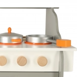 Kinderküche aus Holz ist ideal für kleine Entdecker, die gerne die Tätigkeiten von Erwachsenen nachahmen. Mit dieser Küche können sie ohne Bedenken die Magie des Kochens entdecken. Die Küche ist mit dem nötigen Zubehör ausgestattet, wie Topf, Pfannen, Schneidebrett und auch Gewürze, die dem Spiel Realismus verleihen.