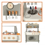 Dank beweglicher Knöpfe mit authentischen Geräuschen lernen Kinder verantwortungsvolles Kochen und das Aufräumen nach dem Essen. Zudem entwickeln sie so ihre feinmotorischen Fähigkeiten sowie ihr räumliches Vorstellungsvermögen bei der Zubereitung verschiedener Gerichte.