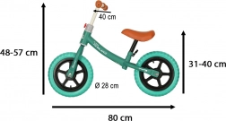 Die Schaumreifen sind leise und verschmutzen oder zerkratzen den Boden nicht – ideal auch für das Fahren im Innenraum. Dank des verstellbaren Sattels (31–40 cm) und des Lenkers (48–57 cm) wächst das Laufrad mit dem Kind mit.