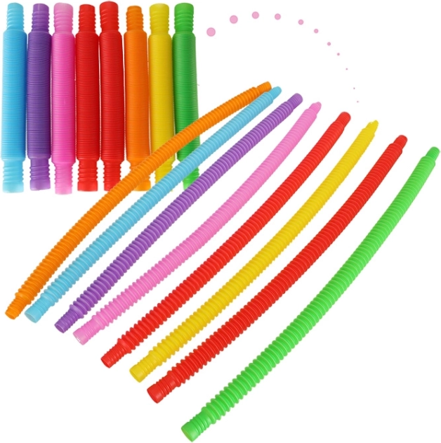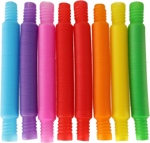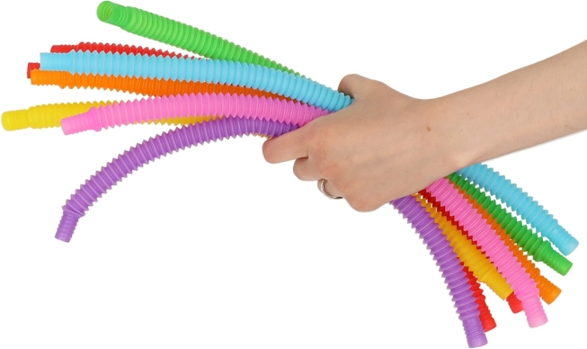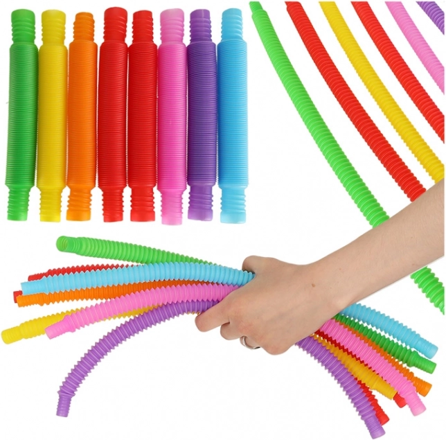 Entdecken Sie den Zauber der sensorischen Rohre, die Kinder lieben! Jedes der acht farbigen Rohre bietet stundenlangen Spaß dank seiner flexiblen Natur. Sie können gestreckt, gedreht und zu verschiedenen Formen verbunden werden und bieten so Raum für Kreativität.
