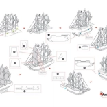 Trennen Sie die einzelnen Teile aus den Metallblechen heraus; bei Bedarf verwenden Sie kleine Seitenschneider (nicht enthalten). Die Teile werden mithilfe von Laschen und entsprechenden Öffnungen miteinander verbunden. Biegen Sie die Lasche mit einer kleinen, spitzen Zange (nicht enthalten) um und fügen Sie nach und nach alle Verbindungen zusammen, bis ein äußerst realistisches Meisterstück entsteht!