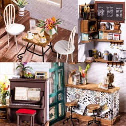 Bauen Sie Ihr eigenes gemütliches Café als detailreiche Miniatur von RoboTime. Das Set bietet realistische Accessoires, stimmungsvolle LED-Beleuchtung und alles Nötige in der Box. Genießen Sie kreative Entspannung beim Zusammenbau und erhalten Sie eine wunderschöne Dekoration für Ihr Zuhause.