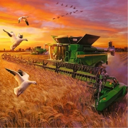 Ein Mähdrescher auf goldenem Feld bringt eine dynamische Szene, die Fantasie und Freude am Puzzeln fördert.