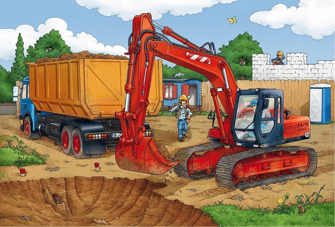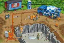 Tauchen Sie ein in die faszinierende Baustellenumgebung mit dem SCHMIDT Puzzle Auf der Baustelle. Jedes Puzzle hat die Maße 26,3 x 17,8 cm und zeigt dynamische Bauszenen.