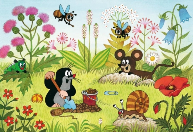 Zwei Kinderpuzzles mit je 24 Teilen mit dem Kleinen Maulwurf und seinen Freunden aus der beliebten Kinderserie.