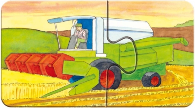 Die Bauernhofbilder – von niedlichen Küken bis hin zu Traktor und Mähdrescher – erweitern ganz natürlich den Wortschatz und die Fantasie. Die spezielle Oberfläche mit Leinenprägung sorgt für ein mattes Bild ohne störende Spiegelungen. Die Puzzles bestehen aus Recyclingkarton und überzeugen damit auch in Sachen Nachhaltigkeit.