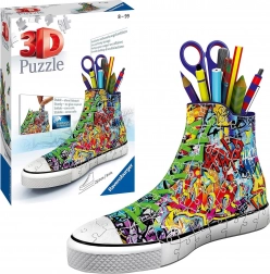 Entdecken Sie die einzigartige Verbindung aus Spaß und Funktionalität. Der 3D-Puzzle-Sneaker mit Graffiti-Design besteht aus spezialgeformten, flexiblen Kunststoffteilen, die passgenau ineinandergreifen und ohne Kleber eine stabile Dekoration ergeben. Nach dem Aufbau erhalten Sie einen originellen Organizer für Stifte, Buntstifte oder Schere, der Ihrem Schreibtisch einen kreativen Touch verleiht.