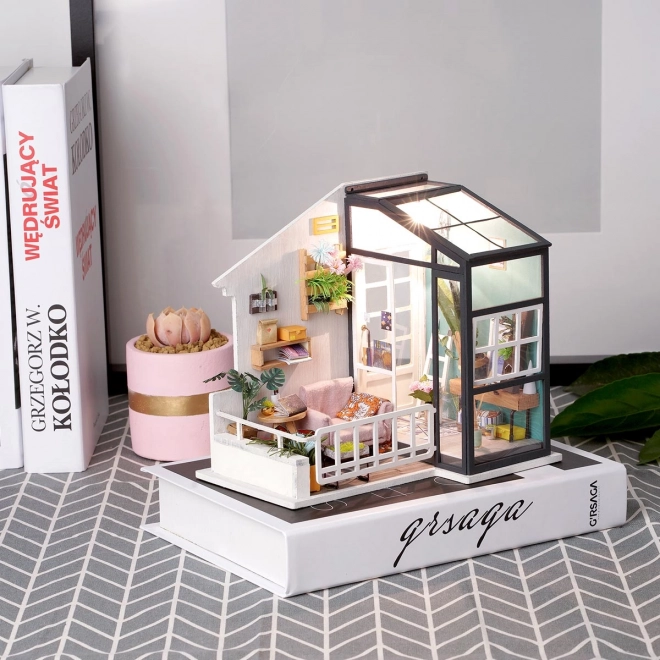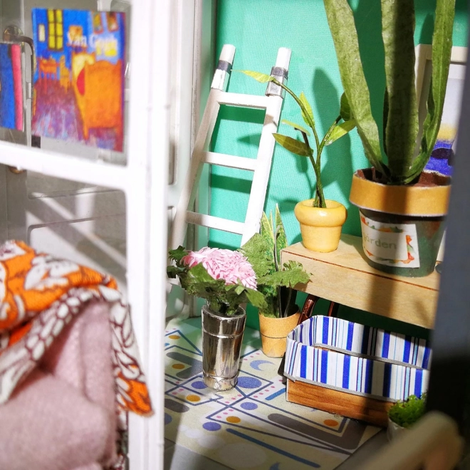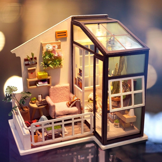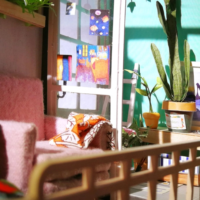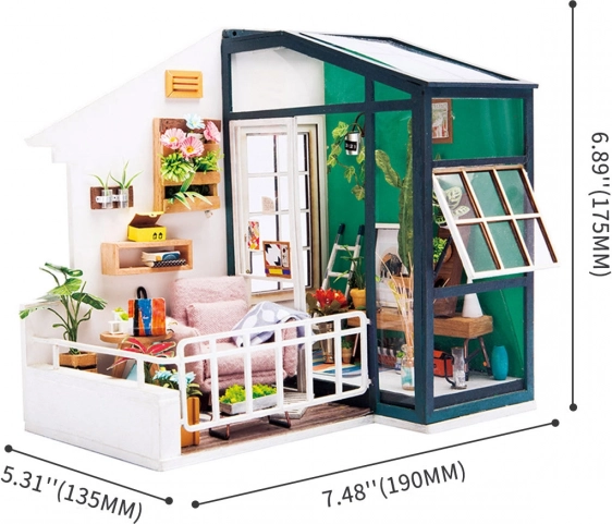 Der Bausatz Robotime-Rolife DGM05 ist ein wunderschönes Haus mit Balkon. Stellen Sie sich vor, Sie sitzen auf einem gemütlichen Sofa unter der warmen Sonne und lesen ein Buch mit einer Tasse Kaffee. Wie lebendig ist diese Szene!