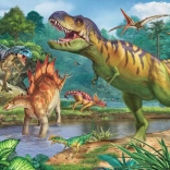 Dieses Kinderpuzzle mit Dinosaurier-Motiv bietet die ideale Kombination aus Spaß und Lernen. Dank der großen XXL-Teile ist das Puzzeln auch für jüngere Kinder komfortabel und übersichtlich. Nach dem Fertigstellen des Bildes mit den Maßen ca. 49 × 36 cm wartet auf kleine Künstler zusätzlich ein Malbuch, mit dem sie ihrer Fantasie freien Lauf lassen können.