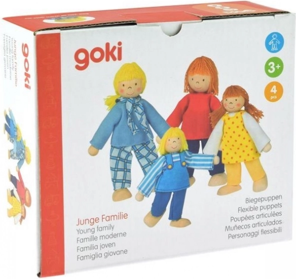 Das Set „Junge Familie“ umfasst Mutter, Vater, Tochter und Sohn. Die hölzernen Körper mit flexiblem Draht ermöglichen natürliche Posen – Kinder können leicht Alltagssituationen und eigene Geschichten nachspielen. Dank der Größe von 10–12 cm passen die Figuren hervorragend in gängige Puppenhäuser, insbesondere in Modelle der Marke GOKI.