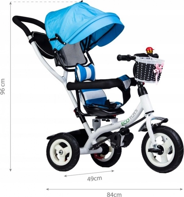 Dieses Dreirad der Marke ECOTOYS wurde entwickelt, um Ihrem Kind beim Spielen und auf Spaziergängen Sicherheit und Komfort zu bieten. Eine weiche Rückenlehne zusammen mit Sicherheitsgurten und Schutzbügeln sorgt dafür, dass Ihr Kind sicher an seinem Platz bleibt. Das klappbare Verdeck schützt vor Witterungseinflüssen, und der drehbare Sitz erleichtert das Ein- und Aussteigen.
