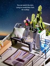 Begeben Sie sich auf eine kreative Reise mit diesem einzigartigen künstlerischen Bausatz von RoboTime, der eine detailreiche Miniatur eines Dachbodenhäuschens bietet. Er ermöglicht entspannte Stunden beim Zusammenbau und verleiht Ihrem Interieur dank der farbigen LED-Beleuchtung eine gemütliche Atmosphäre.