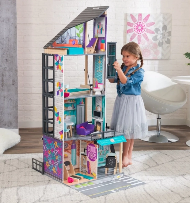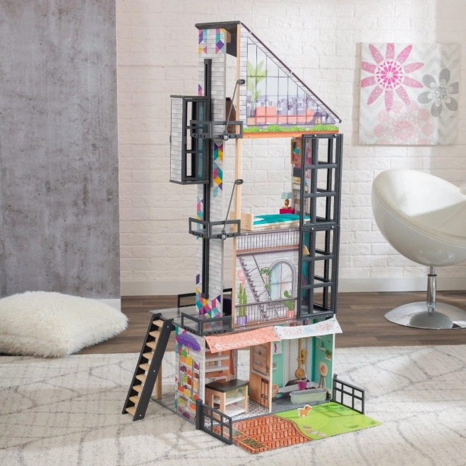 Entdecken Sie das Großstadtabenteuer mit dem Puppenhaus KidKraft Bianca City Life. Dieses designstarke „Loft“-Haus im Hochhausstil verbindet modernes Aussehen mit robuster Holzausführung. Bunte grafische Hintergründe, funktionale Elemente und der offene 360°-Zugang fördern gemeinsames Spiel mehrerer Kinder und unendliche Fantasie.