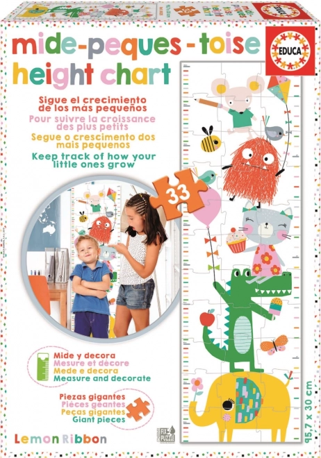 Wecken Sie die Kreativität Ihrer Kinder mit der Wachstumsmesslatte Lemon Ribbon von Educa. Diese Messlatte bietet nicht nur eine praktische Möglichkeit zur Messung der Größe, sondern unterstützt auch spielerische Aktivitäten und entwickelt motorische Fähigkeiten: