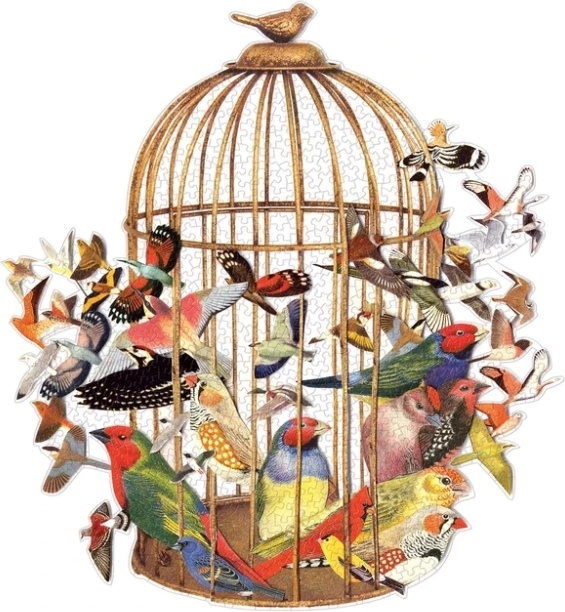 Entdecken Sie den Spaß geformter Puzzles, bei denen das Ergebnis definitiv kein gewöhnliches Rechteck ist. Nach dem Zusammensetzen erhalten Sie eine Design-Dekoration in Form eines Vogelkäfigs, entworfen vom talentierten Künstler Ben Giles. In der Verpackung finden Sie sorgfältig verpackte Teile in einer stabilen Box sowie ein Vorlagenbild für ein leichteres Puzzeln.