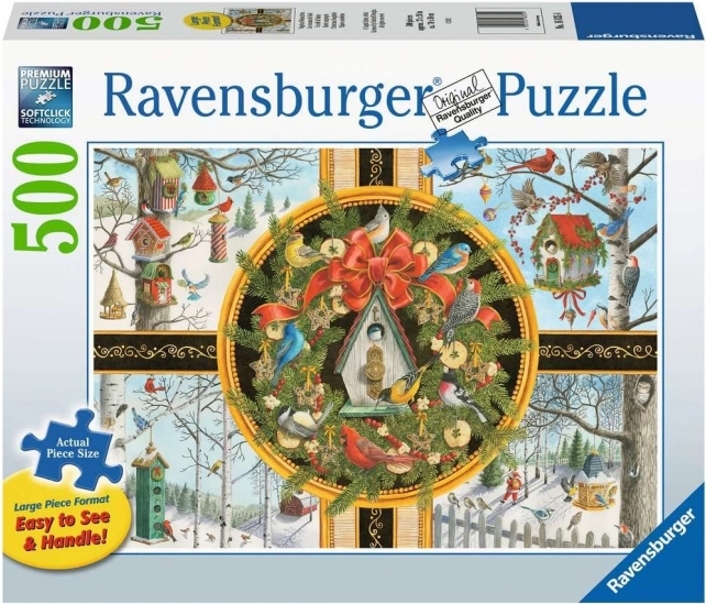 Dieses Set besteht aus 500 Teilen und hat zusammengebaut etwa die Maße 61 x 46 cm, was ausreichend Platz für die Präsentation des fertigen Werks bietet. Das Motiv Weihnachtsgesangsvögel verleiht Ihrem Zuhause den Zauber und die Gemütlichkeit der Weihnachtsfeiertage.
