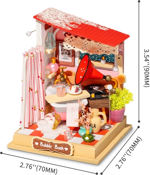 Tauchen Sie ein in die Welt der Miniaturen mit Miniatur-Badezimmer Bubble Bath von RoboTime. Dieses Kunsthandwerks-Set bietet stundenlange Unterhaltung beim Zusammenbauen und Bemalen. Nach Fertigstellung können Sie es als schöne Dekoration in Ihrem Raum verwenden.