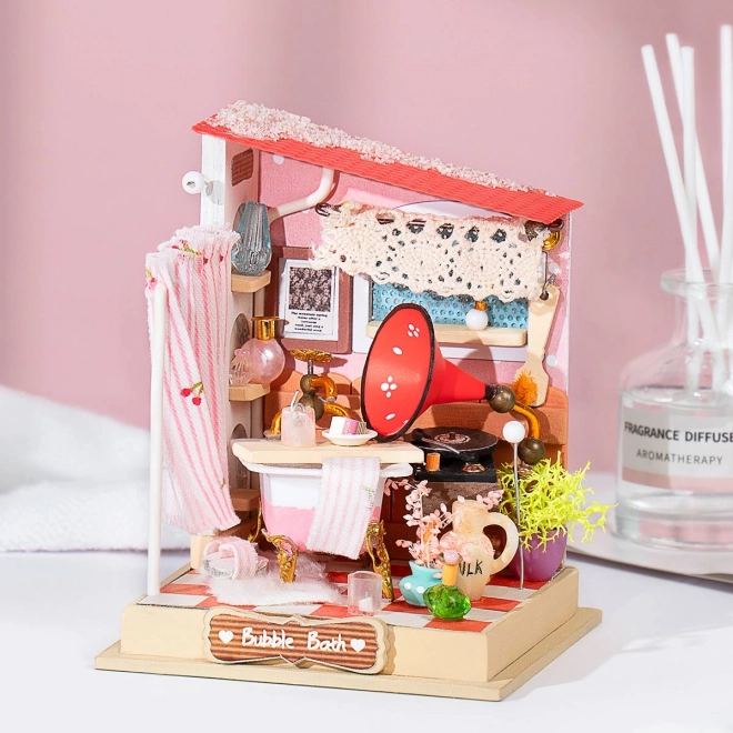 Miniatur-Badezimmer Bubble Bath von RoboTime ist die perfekte Verbindung von Kreativität und Entspannung. Erschaffen Sie eine detaillierte Szene mit magischer Atmosphäre direkt bei Ihnen zu Hause und lassen Sie sich von sanften Tönen und Details verzaubern.
