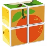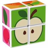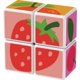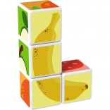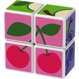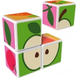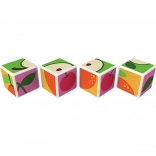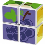Kunststoffwürfel mit Fruchtmotiven. Die Würfel sind magnetisch, sodass Kinder daraus dreidimensionale Objekte bauen können. Kinder können einen Apfel, eine Erdbeere, Weintrauben, Kirschen, eine Banane, einen Pfirsich sowie einen Schornstein oder einen Zaun für Tiere bauen. Erweitern Sie die Spielmöglichkeiten durch den Kauf weiterer GEOMAG Magicube Sets. Die Magicube Kinderwürfel fördern Koordination und Motorik, entwickeln Fantasie und logisches Denken und motivieren zum Erzählen von Geschichten. Die Packung enthält 4 magnetische Würfel und 6 Karten mit Bauvorschlägen für Tiere. Hergestellt in der Schweiz. Hinweisvideo: Magnetwürfel Geomag Magicube.