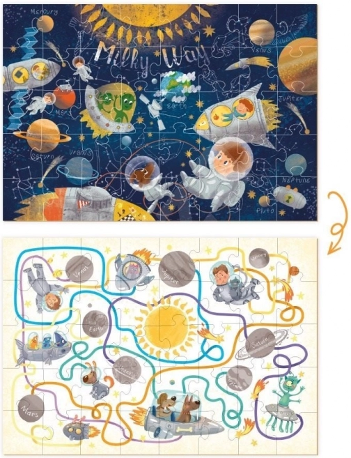 Dieses verspielte Set verbindet das Zusammensetzen eines beidseitigen Puzzles mit unterhaltsamen Aktivitäten, die Kinder in das Thema Weltraum eintauchen lassen. Dank farbenfroher Illustrationen und durchdachter Aufgaben unterstützt es kontinuierliches Lernen durch Spiel und stärkt die Konzentrationsfähigkeit.