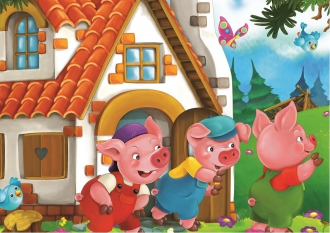 Dieses Set der Marke ART PUZZLE bietet zwei unterhaltsame Puzzles mit dem beliebten Märchenmotiv Die drei kleinen Schweinchen. Dank der unterschiedlichen Teilezahl (24 und 35) können Sie problemlos zu einer höheren Schwierigkeit übergehen, während die Bildgröße gleich bleibt.