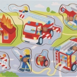 Das Holzpuzzle von GOKI mit Feuerwehrmotiv bietet Kindern eine spielerische Form des Lernens. Dank der Teile mit Griffknöpfen können sie den richtigen Griff trainieren, die Hand-Auge-Koordination entwickeln und entdecken, wie Feuerwehrleute bei Rettungseinsätzen helfen. Die stabile Holzplatte mit passgenauen Aussparungen hält die Teile an ihrem Platz und unterstützt die Konzentration.