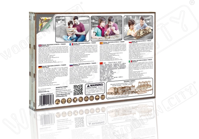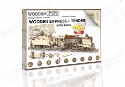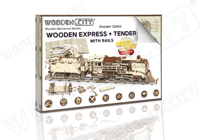 Holz-3D‑Puzzle WOODEN CITY Express mit Tender und Gleisen, 580 Teile