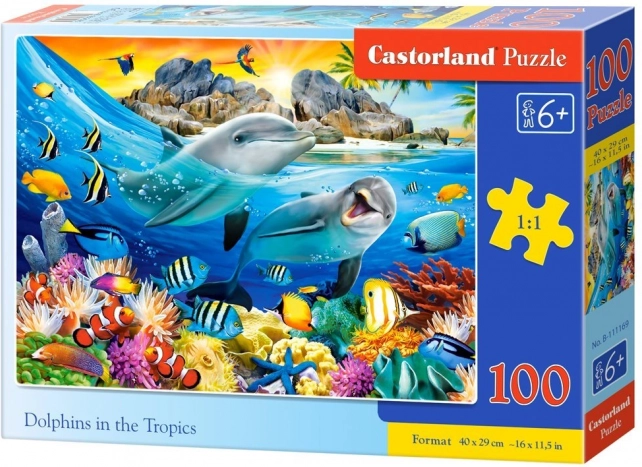 Das Puzzle mit dem Motiv DELPHINS IN THE TROPICS vereint Entspannung, Ästhetik und Kompetenzentwicklung. Dank der 100 stabilen Teile ist es ideal für Kinder mit erster Puzzle-Erfahrung sowie für Erwachsene, die einen angenehmen Moment der Ruhe suchen. Das fertige Bild in der Größe 40 × 29 cm macht sich hervorragend im Kinderzimmer.