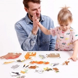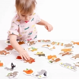 Das Spielen mit Puzzles hilft Kindern, ihren Wortschatz zu erweitern (Benennen von Tieren, Farben und Körperteilen), trainiert die Hand-Auge-Koordination und fördert die Konzentration. Eltern können einfache Spiele und Fragen einbauen, Tierlaute nachahmen oder gemeinsam Informationen über das Leben im Wald suchen.