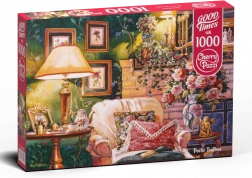 Das Puzzle „Poetic Teatime“ zeigt eine gemütliche Teeecke, geschaffen von der talentierten Künstlerin Erin Dertner. Beim Puzzeln spüren Sie die Atmosphäre einer friedlichen ländlichen Umgebung.