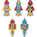 Dank Abschussvorrichtung und Gummiband bauen Kinder die Raketen nicht nur zusammen, sondern schicken sie auch in die Luft. Eine großartige Mischung aus Basteln und Action.