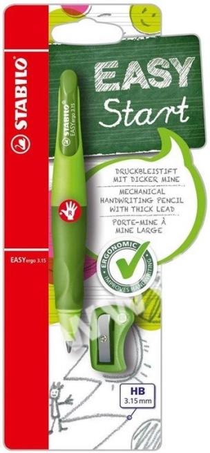 Der Stift ist mit einem praktischen Druckmechanismus ausgestattet und wird auf einer Blisterkarte mit ergonomischem Spitzer geliefert. Nach Gebrauch kann er einfach mit Originalminen für STABILO EASYergo 3,15 nachgefüllt werden. Ideal für die Schule und zum Üben zu Hause.