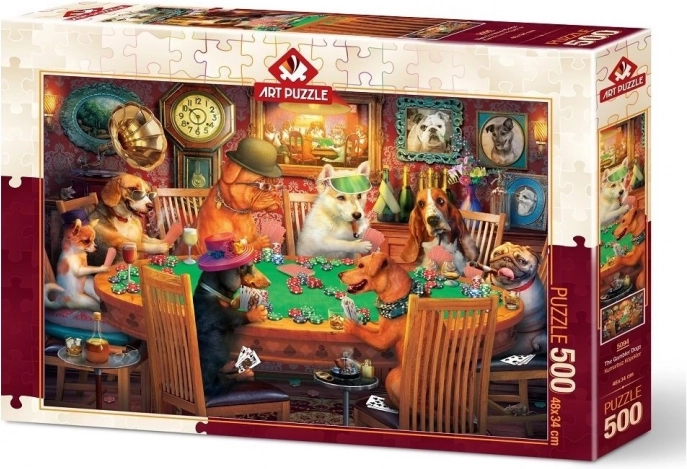 Genießen Sie hochwertigen Puzzlespaß mit einem fesselnden Motiv von Hunden beim Kartenspiel. Das Puzzle mit 500 Teilen ist die ideale Wahl für entspannte Nachmittage, Geduldstraining und die Förderung der Aufmerksamkeit. Nach dem Zusammensetzen erhalten Sie ein dekoratives Bild, das sich hervorragend zum Einrahmen eignet.
