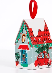 • Praktische Verpackung in einer Schachtel in Form eines verschneiten Häuschens