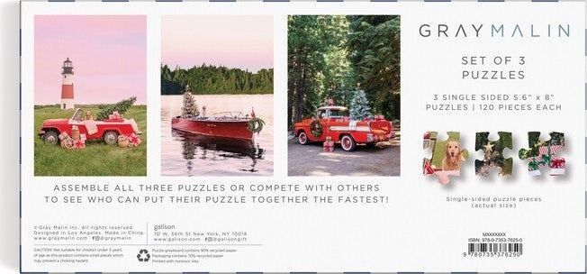 Das Gray Malin The Holiday 3-In-1 Puzzle Set enthält drei 120-teilige Puzzles, inspiriert von den Bestseller-Luftaufnahmen von Gray Malin. Ideal für alle, die in die Welt der Kunstfotografie und Entspannung eintauchen möchten.