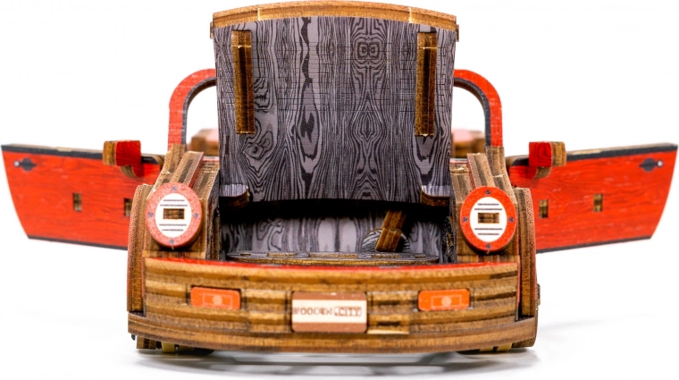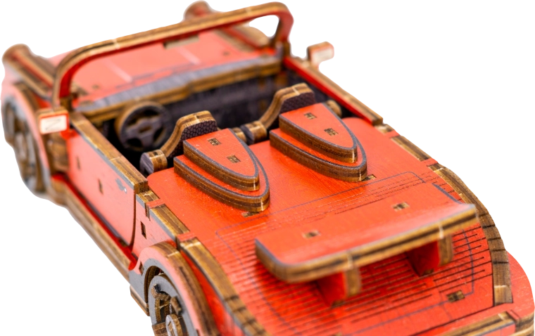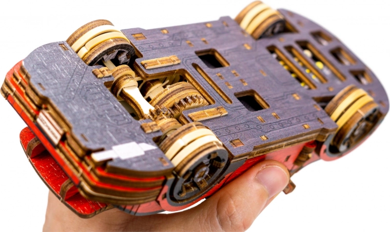 Ein hölzerner mechanischer Bausatz des erstaunlichsten Sportwagens wartet auf Sie! Dank des einzigartigen Designs und überraschender Details dieses Modells wird Ihre Freizeit voller Spaß und großartiger Emotionen sein. Sie können die Lenkung der Vorderräder verwenden. Das Auto kann mit dem Schwungmechanismus bis zu 1 Meter fahren. Eigenschaften des Sportwagens: - Gummiband-getriebener Motor, - drehbare Vorderräder, - markante Farbelemente dank hochpräzisem UV-Druck, - Holzkiste dient als Sockel, - Sammleredition. Das 3D-Puzzle WOODEN CITY Sport Car ist das beste Geschenk für jeden Liebhaber von Sportwagen. Schwierigkeit: 3 von 5 (laut Einteilung von Wooden City) Ungefähre Montagezeit: 3 Stunden Maßstab: 1:22 Holz-3D-Puzzles von WOODEN CITY sind detailliert ausgearbeitete, funktionale mechanische Modelle, die ohne Klebstoff oder Werkzeug zusammengesetzt werden. Sie bestehen aus umweltfreundlichen Holzmaterialien – hochwertigem Birken-Sperrholz. Mit den mechanischen Holzpuzzles von WOODEN CITY erleben Sie stundenlangen Bauspaß und lernen Getriebe, Gummimotoren, Zahnräder und weitere Bauteile aus nächster Nähe kennen. funktionales mechanisches Modell Zusammenbau ohne Verwendung von Klebstoff oder Werkzeug hochwertige Verarbeitung aus natürlichem Material ausgearbeitete Details HINWEIS: Für den Zusammenbau werden ein Abbrechmesser, Schere, Schleifpapier und eine Wachskerze benötigt (nicht im Lieferumfang enthalten). Für ein einwandfreies Funktionieren und einen problemlosen Betrieb müssen Achsen und Zahnräder gewachst werden. Abmessungen des zusammengesetzten Puzzles ca. 19,7 x 8,9 x 5,8 cm