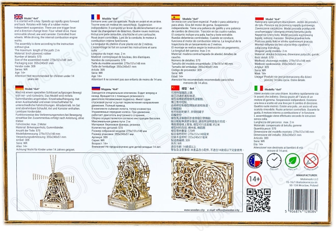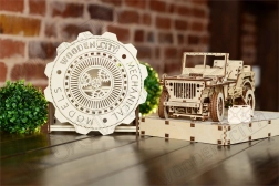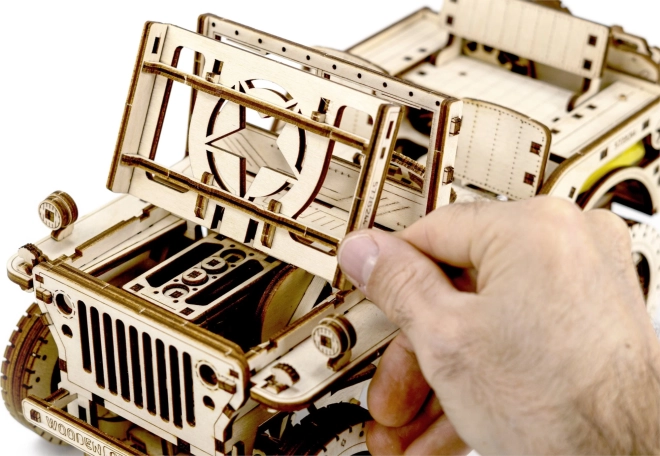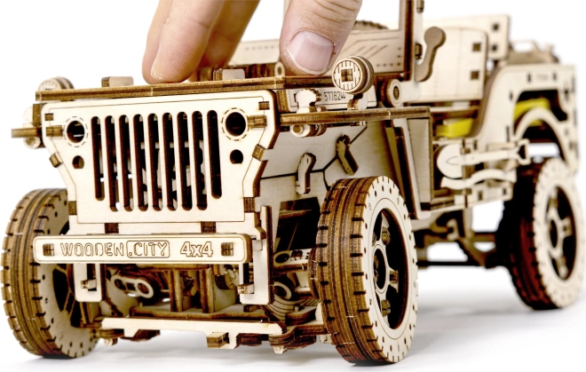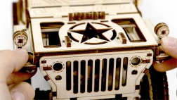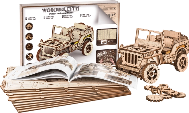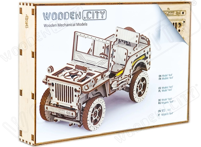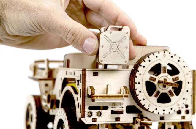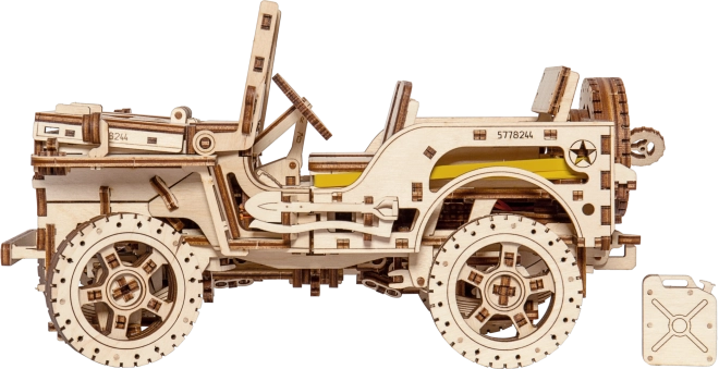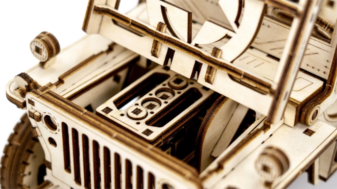 Das Holzmodell Jeep 4x4 von WOODEN CITY ist ein wunderschönes Geschenk für Liebhaber klassischer Fahrzeuge und Modelle. Hergestellt aus ökologisch nachhaltigem Birkensperrholz, bietet dieses Modell: