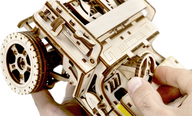 - Funktionale mechanische Elemente: Es umfasst einen beweglichen Kolbenmotor, lenkbare Vorderräder und eine zu öffnende Motorhaube.
