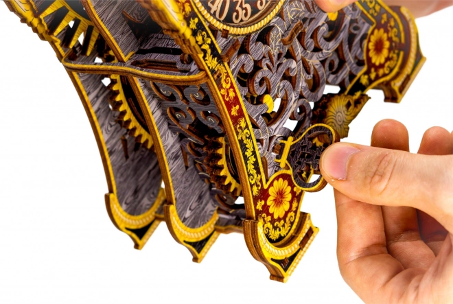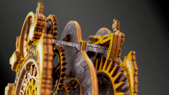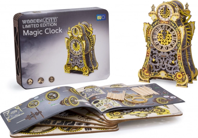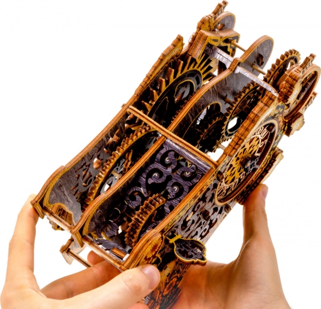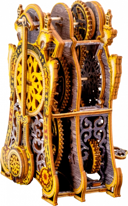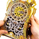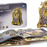 Die Magische Uhr ist Geschichte und Wissenschaft in einem. Nach dem Zusammenbau erwacht sie durch die Bewegung der Zahnräder und den gleichmäßigen Gang des Pendels zum Leben. Zwei Zifferblätter – für Stunden und Minuten – ermöglichen es, die Zeit und die faszinierende Mechanik zu verfolgen. Die limitierte Edition mit feinen Gravuren und farbigem UV‑Druck kommt im Interieur groß heraus und erinnert an die Atmosphäre klassischer Märchen.