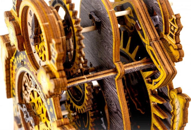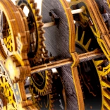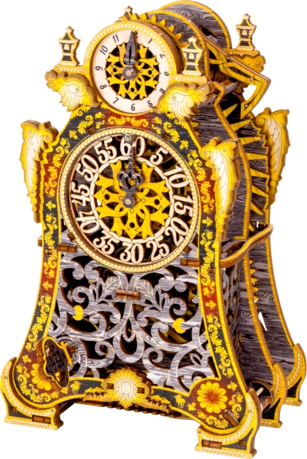 Das Modell besteht aus umweltfreundlichem Birkenholz-Sperrholz und wird ohne Klebstoff oder Werkzeug zusammengebaut. Beim Aufbau lernen Sie die Prinzipien von Übersetzungen, Gummimotoren und dem Lauf eines Uhrenmechanismus aus nächster Nähe kennen.