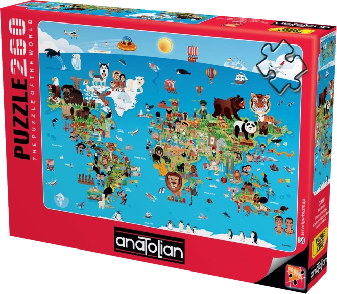 Suchen Sie ein Puzzle, das Spaß und Lernen verbindet? Die gezeichnete Weltkarte von ANATOLIAN bringt niedliche Illustrationen von Kontinenten, Tieren und Sehenswürdigkeiten mit Beschriftungen auf Englisch – so üben Sie beim Puzzeln ganz nebenbei eine Fremdsprache. Dank der 260 Teile ist es ideal für Schulkinder und gemeinsames Familienpuzzeln.