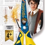 Anfängerschere mit attraktivem Harry-Potter-Motiv. - Symmetrische Griffe - Abgerundete Spitzen - Verzierte Klingen aus geschliffenem Edelstahl - Länge: 13 cm